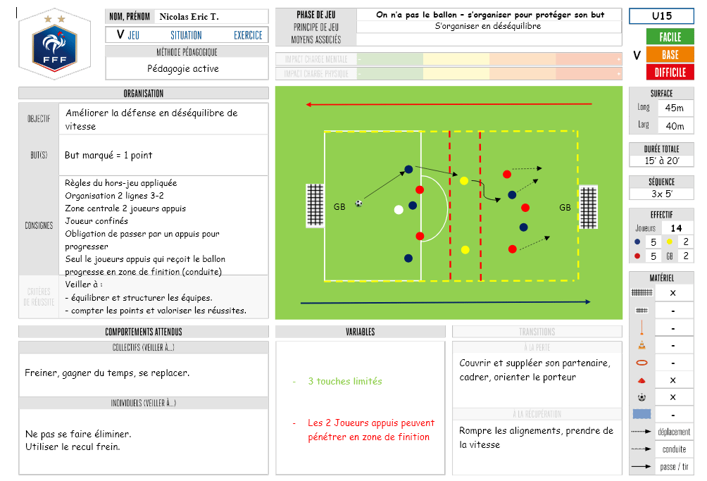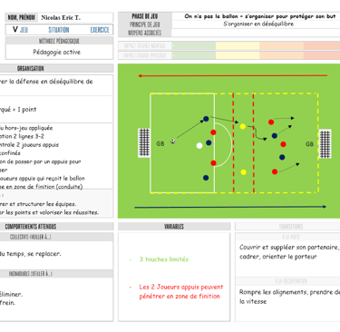Jeu sur la phase de "s'organiser pour protéger son but" et le principe de jeu de "s'organiser en déséquilibre mais avec l'objectif (le plus important) "Améliorer la défense en déséquilibre de vitesse. Il y'a plusieurs types de déséquilibre et vous l'aurez compris avec ce jeu, ce sera de défendre avec un déséquilibre de vitesse.