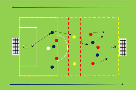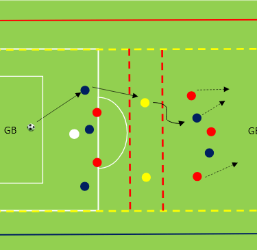 Pour jouer sur la vitesse et donc à apprendre à défendre on va devoir mettre l'attaquant dans les bonnes dispositions, c'est pour cela qu'il y'a une ligne ou réside les 2 joueurs appuis offensifs indéfendable qui à la réception de la passe vont devoir entrer en zone de finition en conduite de balle donc mettre de la vitesse. Il est obligatoire de passer par 1 des 2 joueurs appuis pour progresser. 1 seul pourra pénétrer en zone de finition, puisque le but ce n'est pas le déséquilibre de surnombre.